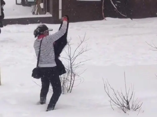 哈尔滨大妈雪地干洗呢子大衣