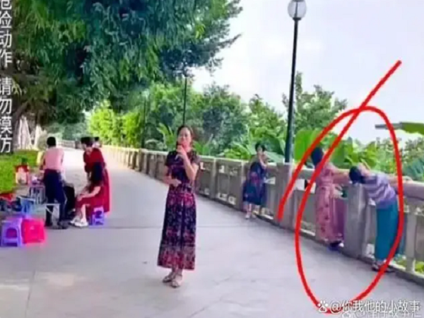 广东一大妈健身时拉断石栏杆,砸在地上摔成几段