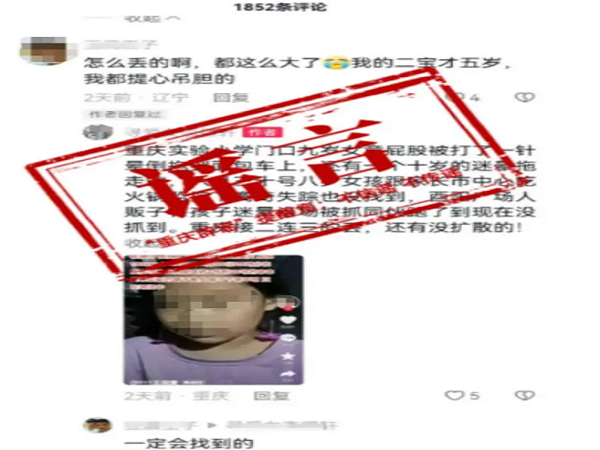 10月30日,据重庆辟谣:近日,有网民在某网络平台上发帖称“酉阳广场人贩子将孩子迷晕”。经向酉阳县相关部门核实,该信息为谣言。