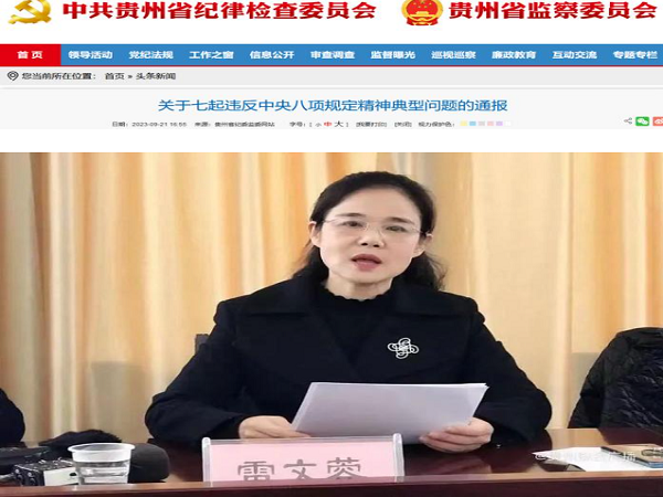 贵州省纪委监委网站9月21日公开通报通报七起违反中央八项规定精神典型问题。其中包括贵州省科学技术协会原党组成员、副主席雷文蓉违规收受礼品、礼金,接受可能影响公正执行公务的宴请问题。