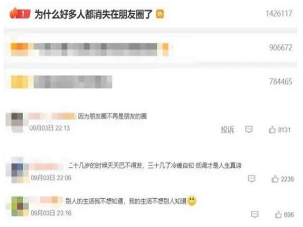 微博话题“为什么好多人都消失在朋友圈了”冲上了热搜榜第一名的位置,引发热议。
