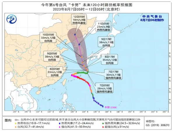 8月7日06时,中央气象台继续发布台风蓝色预警