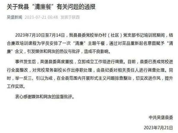 官方通报“清廉餐”有关问题:全面整改,党校常务副校长停职