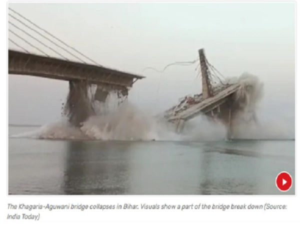 据《今日印度》等媒体6月5日报道,上周日下午6点左右,印度一横跨恒河大桥再次发生坍塌。报道称,这座大桥是阿格瓦尼-苏丹甘吉大桥,是一座在建桥梁,位于比哈尔邦。目前,比哈尔邦首席部长尼蒂什·库马尔已下令对此事进行调查。