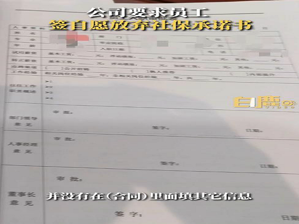 公司要求员工自愿放弃社保 员工称不签会被挤兑
