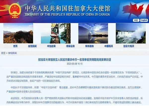 反制!中方宣布加拿大一外交官为“不受欢迎的人”,要求其5月13日前离华