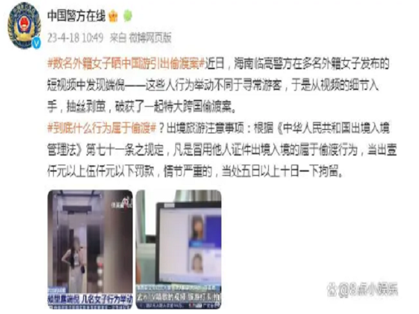 最近,海南临高警方在多名外籍女子发布的短视频中发现她们的行为举动不同于一般的游客,于是从视频的细节入手,抽丝剥茧,破获了一起特大跨国偷渡案。