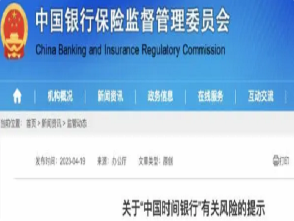 4月19日,银保监会发布风险提示,近期银保监会通过日常监测发现,个别网站发布“中国时间银行上市”等虚假信息,且有名为“时间银行”的移动应用程序(APP)以公益养老为名目开展投资活动。
