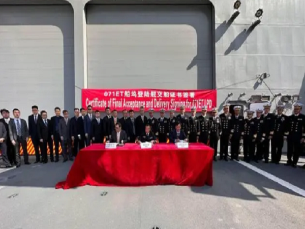 泰国皇家海军4月10日证实,泰国军方代表在上海沪东中华造船厂接收071ET型船坞登陆舰。泰国《曼谷邮报》援引泰国皇家海军 (RTN) 的介绍称,这艘作为潜艇补给舰的新型护卫舰计划于4月27日抵达泰国。随着交付证书的签署,071ET舰成为东南亚地区最大的现役军舰。