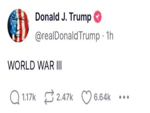 中新网4月10日电 据外媒报道,美国前总统特朗普9日在社交媒体平台上写道:“第三次世界大战。”这是他自2022年底宣布竞选美国总统以来,至少第5次发表此类言论。