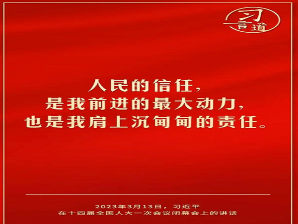 习近平在十四届全国人大一次会议上的讲话中说,这次大会选举我继续担任中华人民共和国主席,我对各位代表和全国各族人民的信任,表示衷心感谢!
