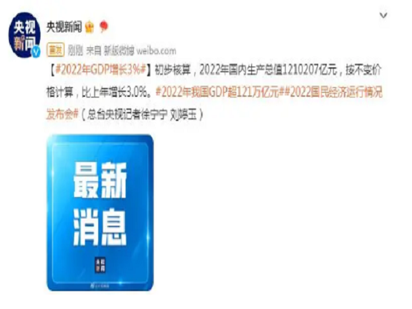 国家统计局:2022年全年国内生产总值比上年增长3.0%