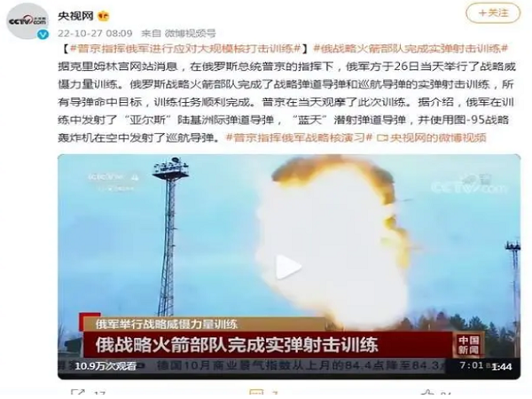 据克里姆林宫网站消息,在俄罗斯总统普京的指挥下,俄军方于26日当天举行了战略威慑力量训练。