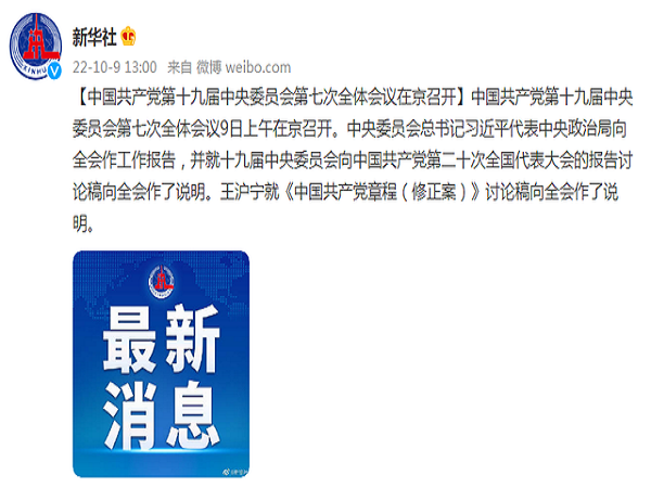 中国共产党第十九届中央委员会第七次全体会议9日上午在京召开。
