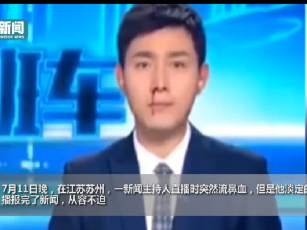 7月11日晚,江苏苏州,一主持人直播突然流鼻血仍淡定播报,众多网友为其敬业精神点赞,留言让主持人注意身体。