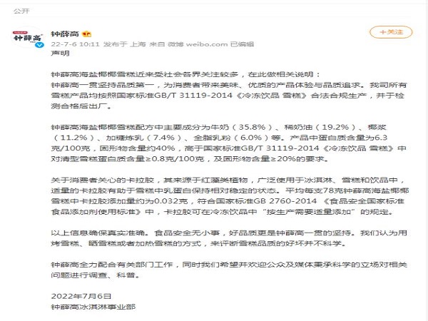 钟薛高回应“雪糕烧不化”等问题