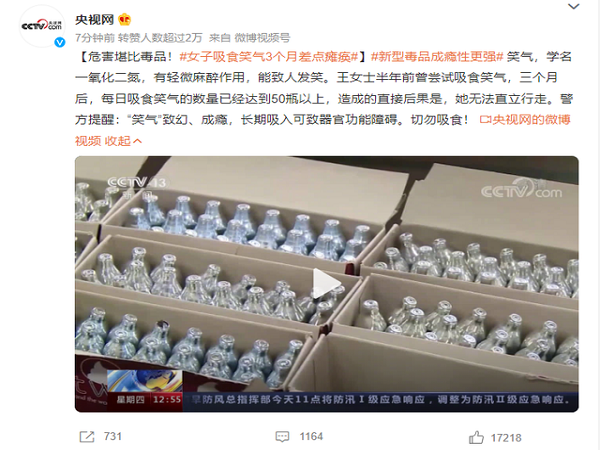 切勿吸食!女子吸食笑气3个月差点瘫痪
