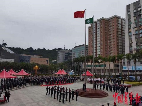 参加庆祝澳门回归22周年升旗仪式 内地奥运健儿代表团开启访澳行程