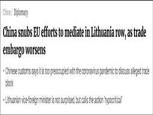 中国海关拒绝欧盟调停立陶宛贸易争议请求:目前正忙着防疫