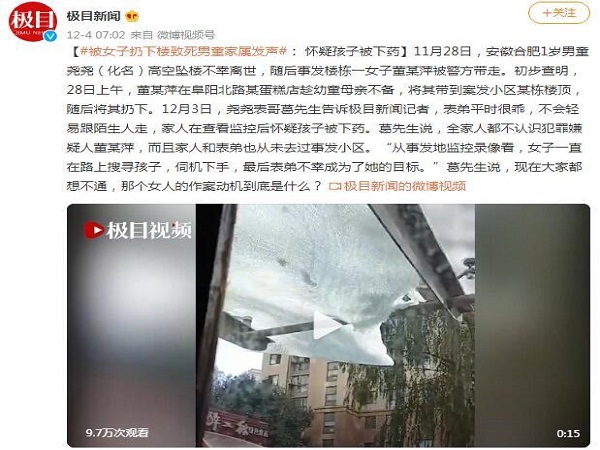 被女子扔下楼致死男童家属发声:怀疑孩子被下药