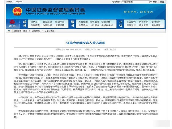 12月5日,证监会网站发布证监会新闻发言人答记者问,具体内容如下。