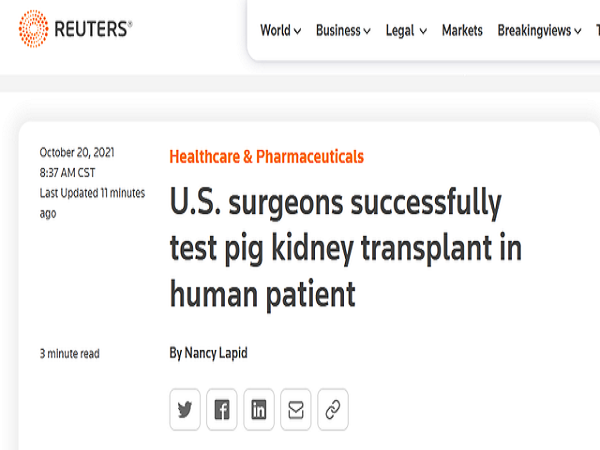 世界首例!猪肾移植人体手术成功,3天均未发生排异现象