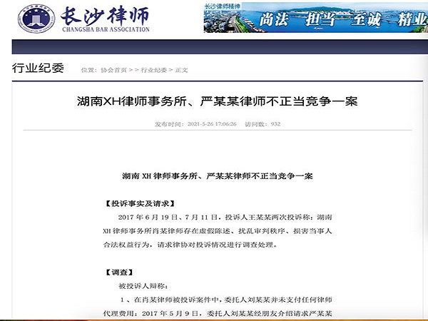 长沙律协官网的处分通报在代理一起民事案件中,最低可收律师服务费为41万余元,但长沙一律师仅收5000元。