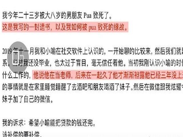 女生称被男友pua跳楼自杀 家属:抵押房产给男友买豪车