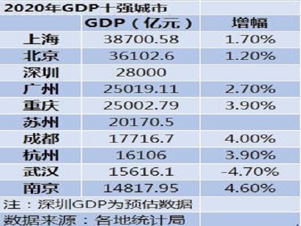 2020年GDP十强城市:广州险胜重庆,南京首次入榜