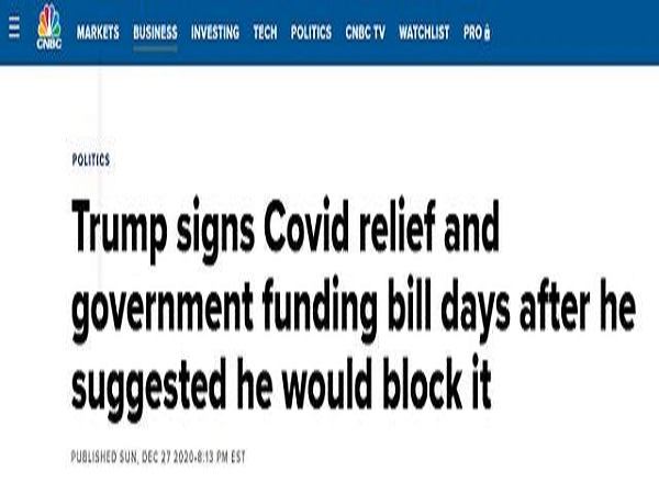 美媒:特朗普已签署新冠纾困法案及政府支出法案