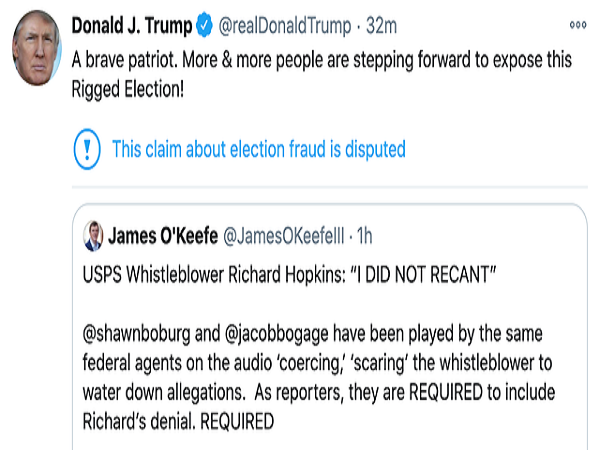 特朗普转发多条推文谈“被操纵的选举”,称美国民众“不会接受”