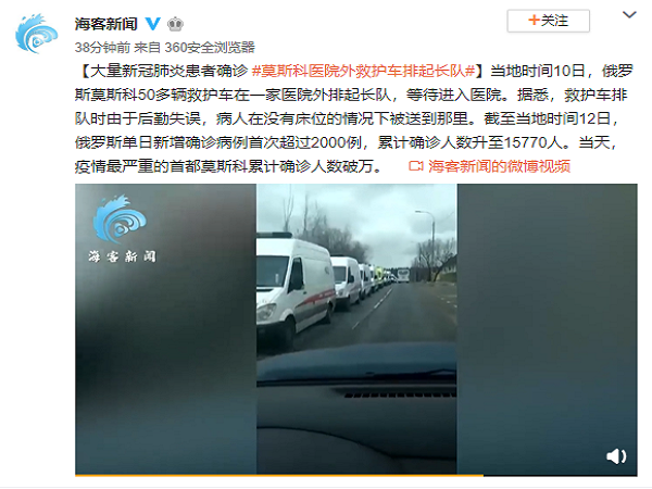 莫斯科确诊破万 医院外50多辆救护车排起长队