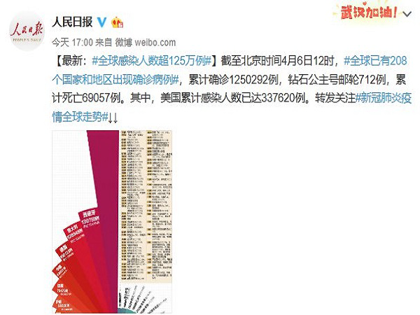 全球感染人数超125万例 美国新冠肺炎确诊突破33万