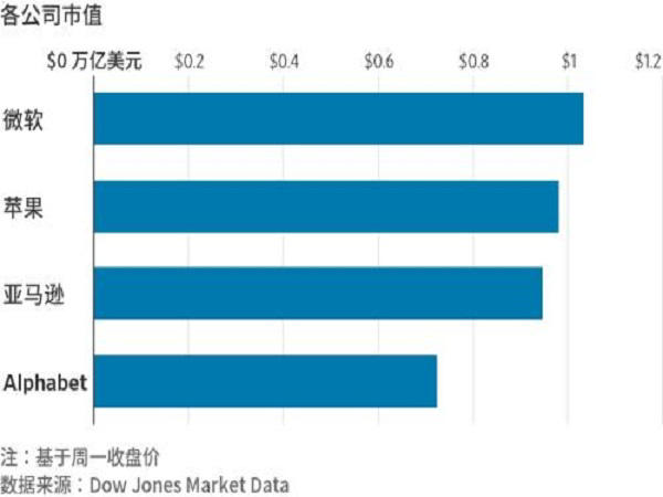 苹果市值跌破万亿美元 微软成万亿俱乐部惟一成员