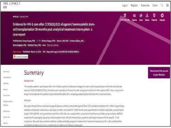 在这项最新研究中,作者对患者病情改善的评估从‘长期缓解’改为了‘治愈’,并确认‘伦敦病人’是世界上第2例被治愈的艾滋病患者。