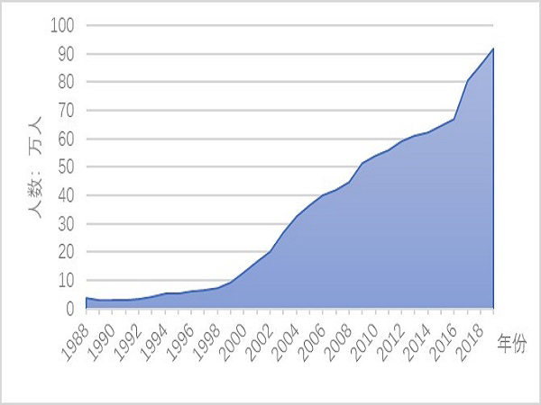 41年来,我国研究生招生人数从1978年的1.07万人增至2019年的91.7万人,期间增长约85倍。