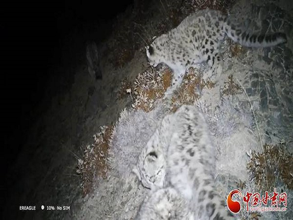 近日,阿克塞县自然资源局林业生态工作站工作人员,在阿克塞县境内海拔3000多米的祁连山区开展野生动物疫源疫病巡查过程中,对2019年年底与世界自然基金会(WWF)合作架设的部分红外线相机进行了回收,在回收的一台红外相机中发现四只雪豹同框的珍贵画面,这是在这一地区首次拍摄到四只雪豹同框画面。