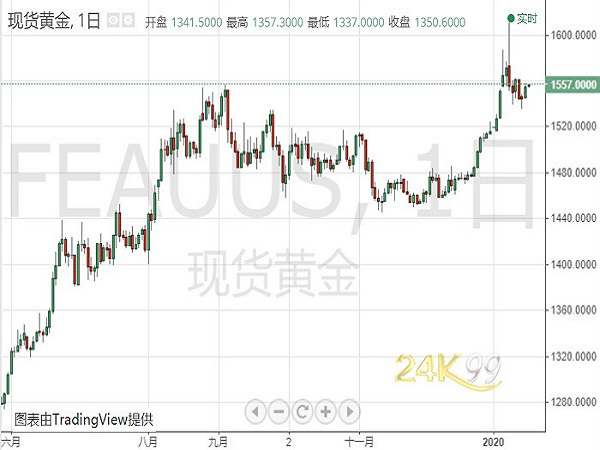 周四(1月16日)亚市早盘,国际现货黄金位于1557.00美元/盎司水平。