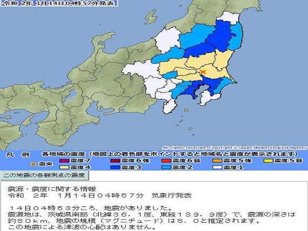 据日媒报道,当地时间14日凌晨4时53分,日本茨城县南部发生里氏5级地震,震源深度为50千米,日本关东多地震感明显。