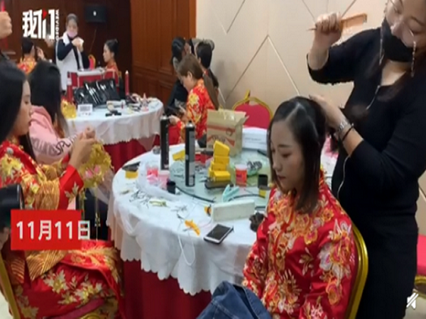 11月11日,火箭军某部为116对新人举行集体婚礼。在婚礼前夜,基层官兵还为新人及其家属带来一场轻喜剧《幸福告白》。有新娘看得感动落泪。