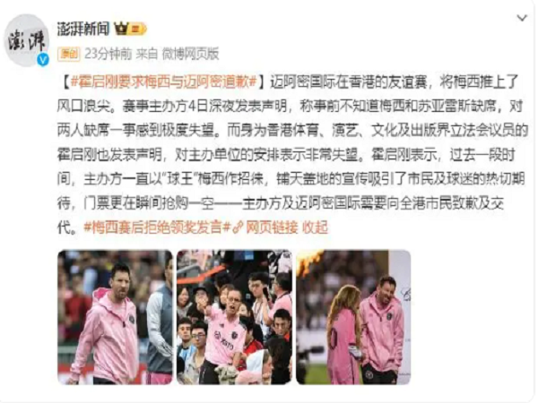 霍启刚要求梅西与迈阿密道歉