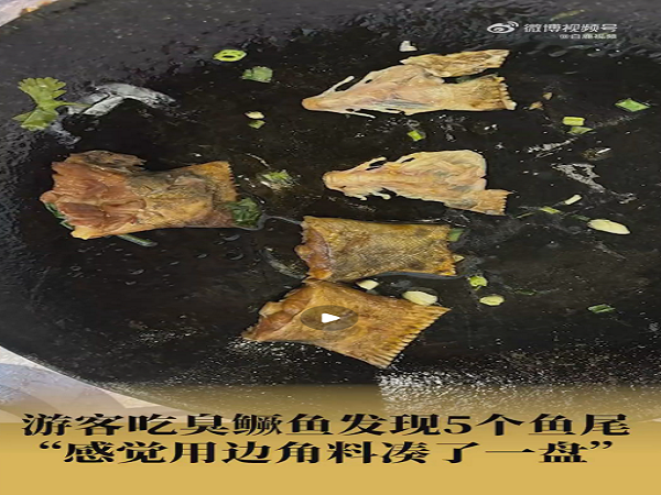 近日,安徽黄山。游客在饭店点了一份臭鳜鱼,发现有5个鱼尾巴。