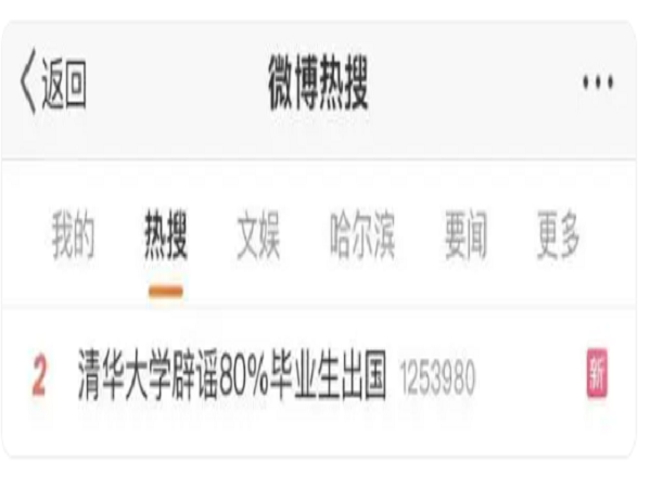 1月17日,“清华大学辟谣80%毕业生出国”的消息,登上热搜。