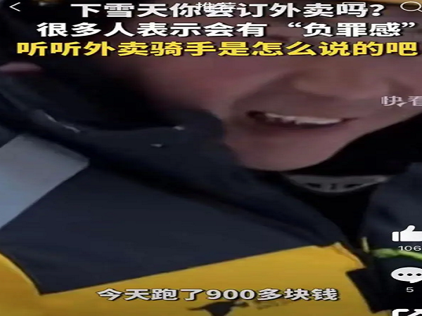 近日,全国多地经历大范围降雪,严寒天气、湿滑道路,使得出行格外困难,“下雪天该不该点外卖”的话题也冲上热搜。