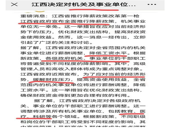 12月14日,一则“江西将对机关事业单位降薪”的消息在社交平台流传,引发网友关注。