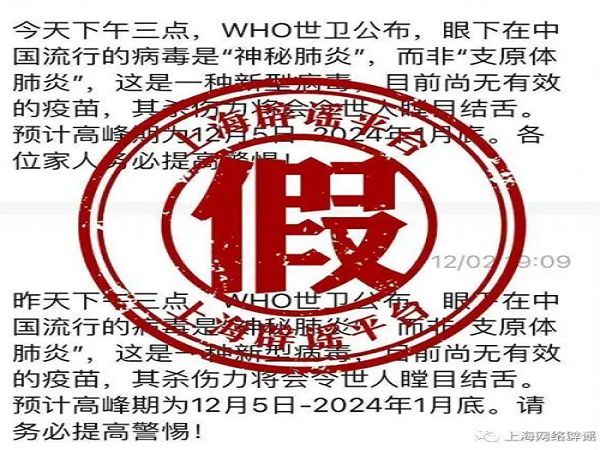 近日,上海辟谣平台接到不少粉丝留言,询问网传“WHO世卫公布,眼下在中国流行的病毒是‘神秘肺炎’”的消息是真是假。