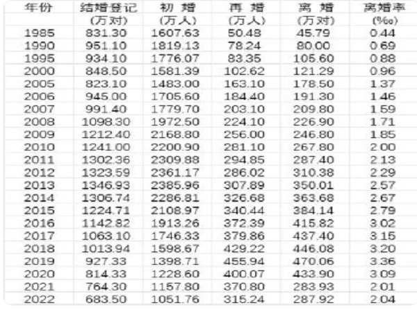 去年我国初婚人数低于1100万