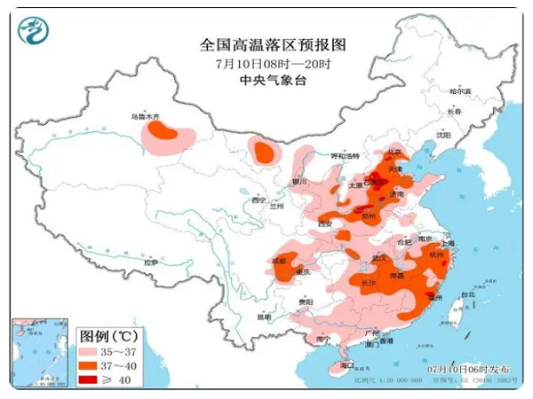 当前高温热浪持续席卷北方,气象部门预测2023年或成为历史上最热夏季。7月10日6时,中央气象台继续发布高温橙色预警,并预计7月10日白天,北京东南部、河北南部、河南北部及浙江东部、福建东部等局地可达40℃以上。