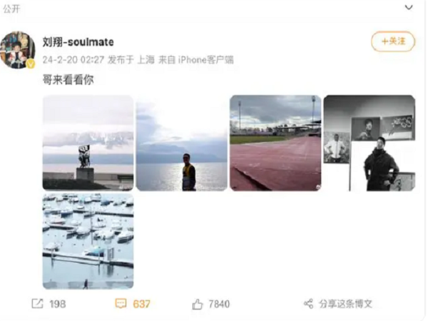 2月20日凌晨2点,奥运冠军刘翔更新社交账号晒出近照,这是他时隔473天后再次在社媒上更新动态。