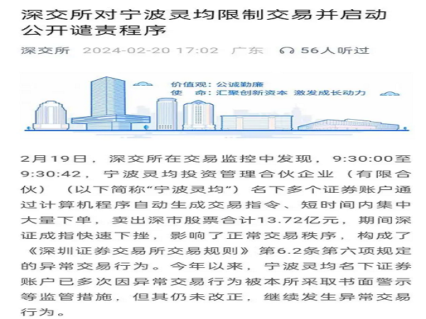 42秒卖出深市股票13.72亿元 量化私募宁波灵均被限制交易